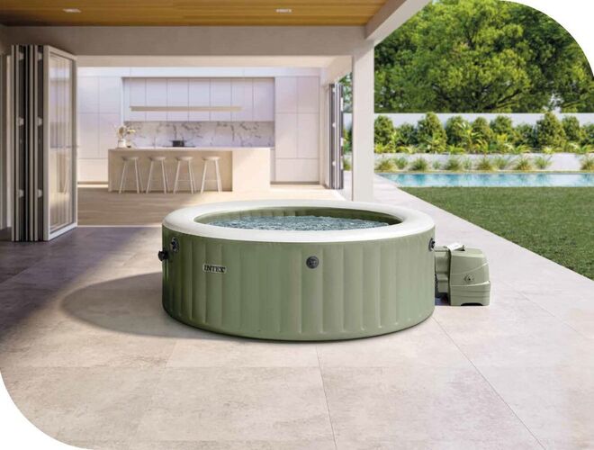 Надувная гидромассажная ванна Intex 28428 PureSpa ™ с подогревом и аксессуарами, тихая и удобная с элегантным дизайном, идеально подходит для вашего личного отдыха в собственном саду.